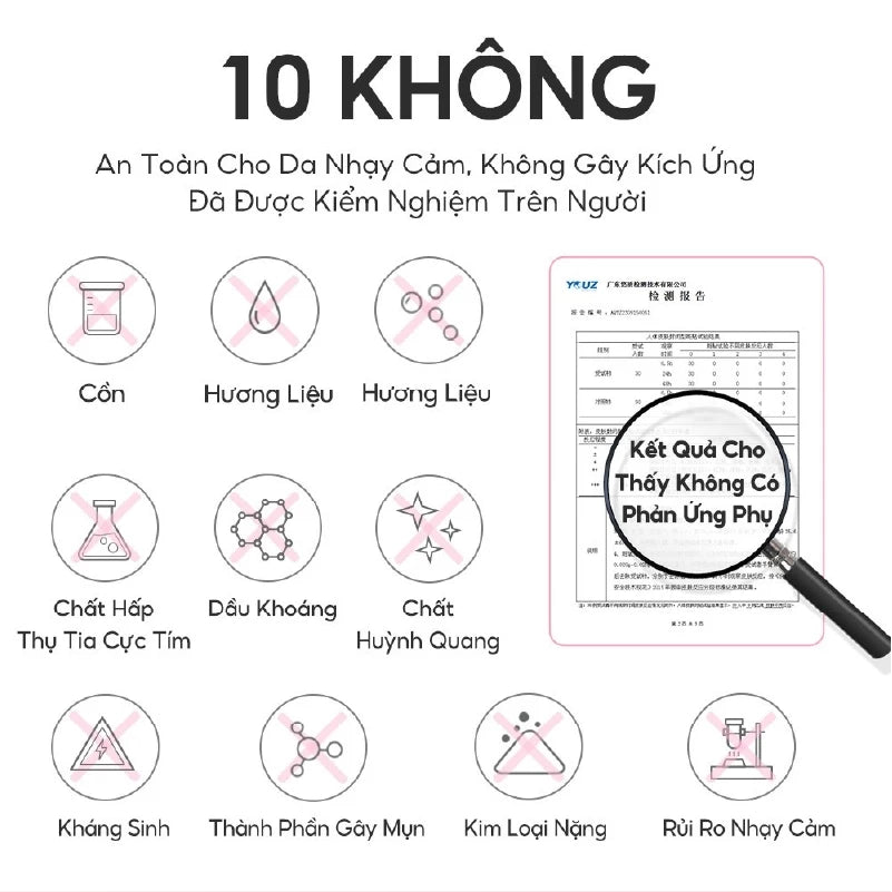 - Nếu Da Khó Chịu, Vui Lòng Ngừng Sử Dụng. Nếu Bạn Có Làn Da Nhạy Cảm, Hãy Thoa Một Lượng Nhỏ Sản Phẩm Lên Phía Sau Tai