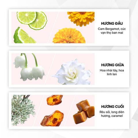 Hương đầu: Cam Bergamot, cúc vạn thọ ban mai.