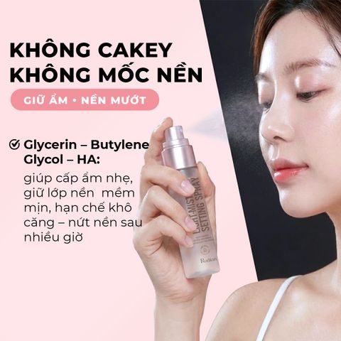 Glycerin, Butylene Glycol, Sodium Hyaluronate giúp giữ ẩm cho da, hạn chế tình trạng cakey hoặc mốc nền.